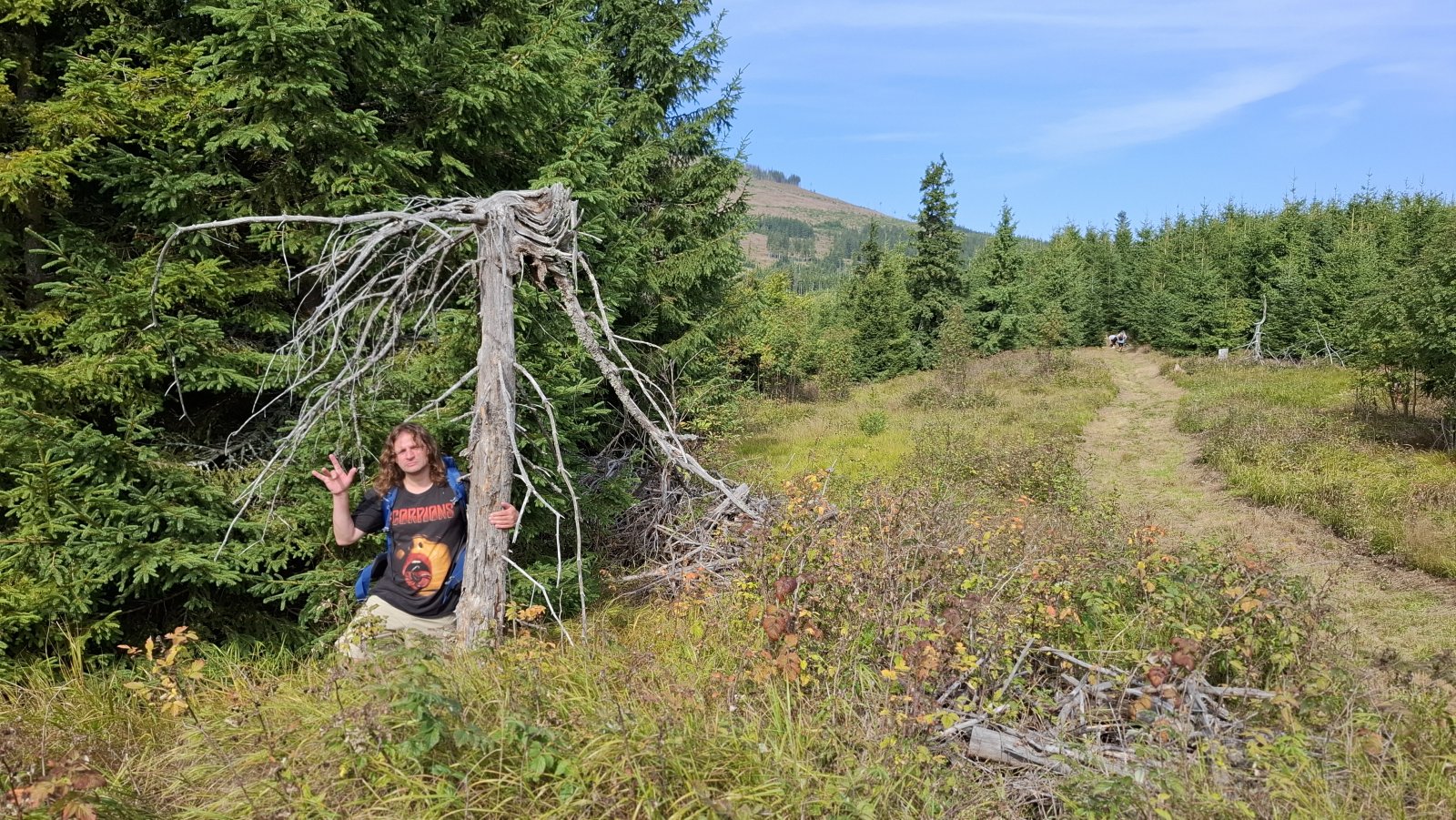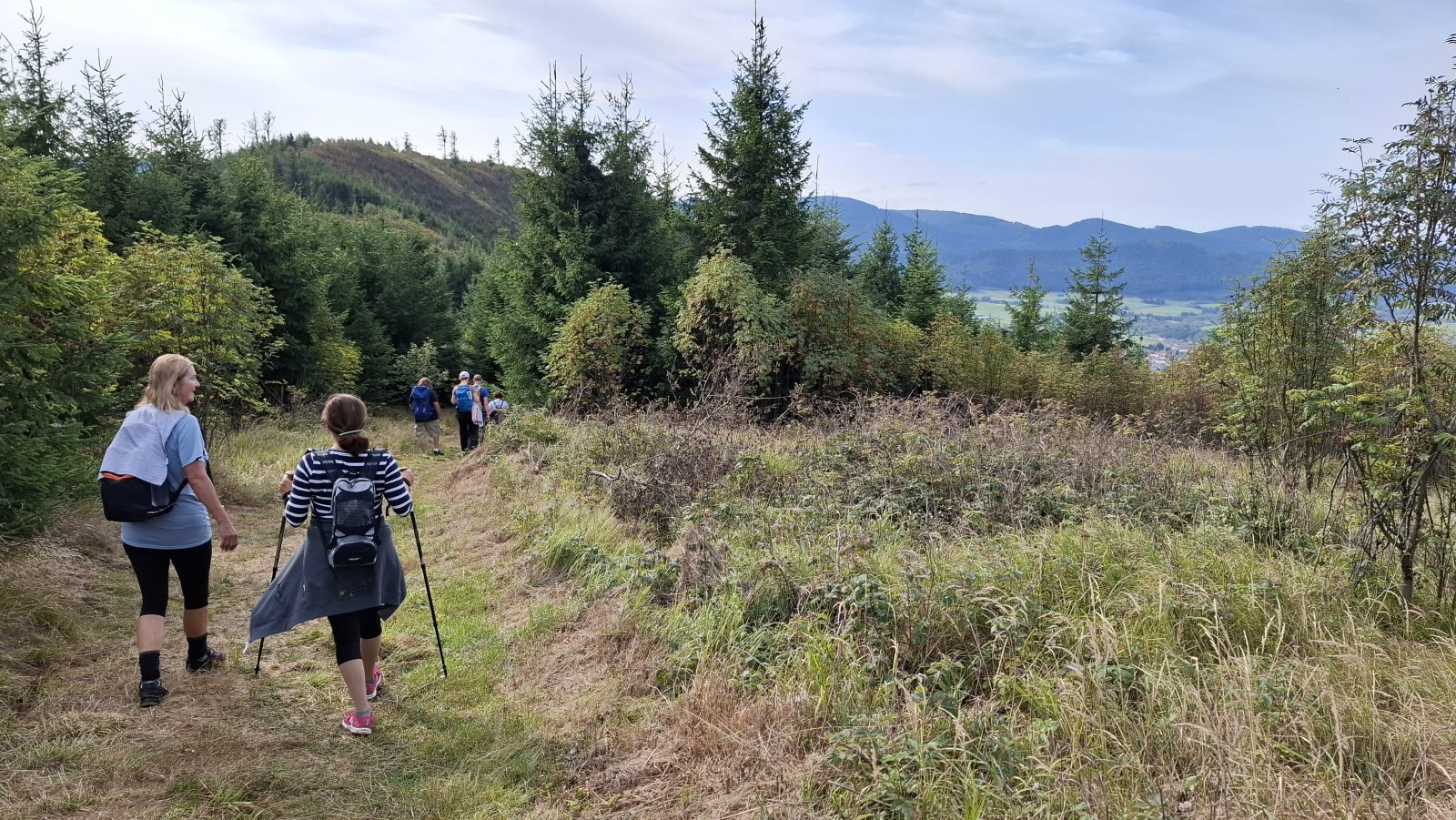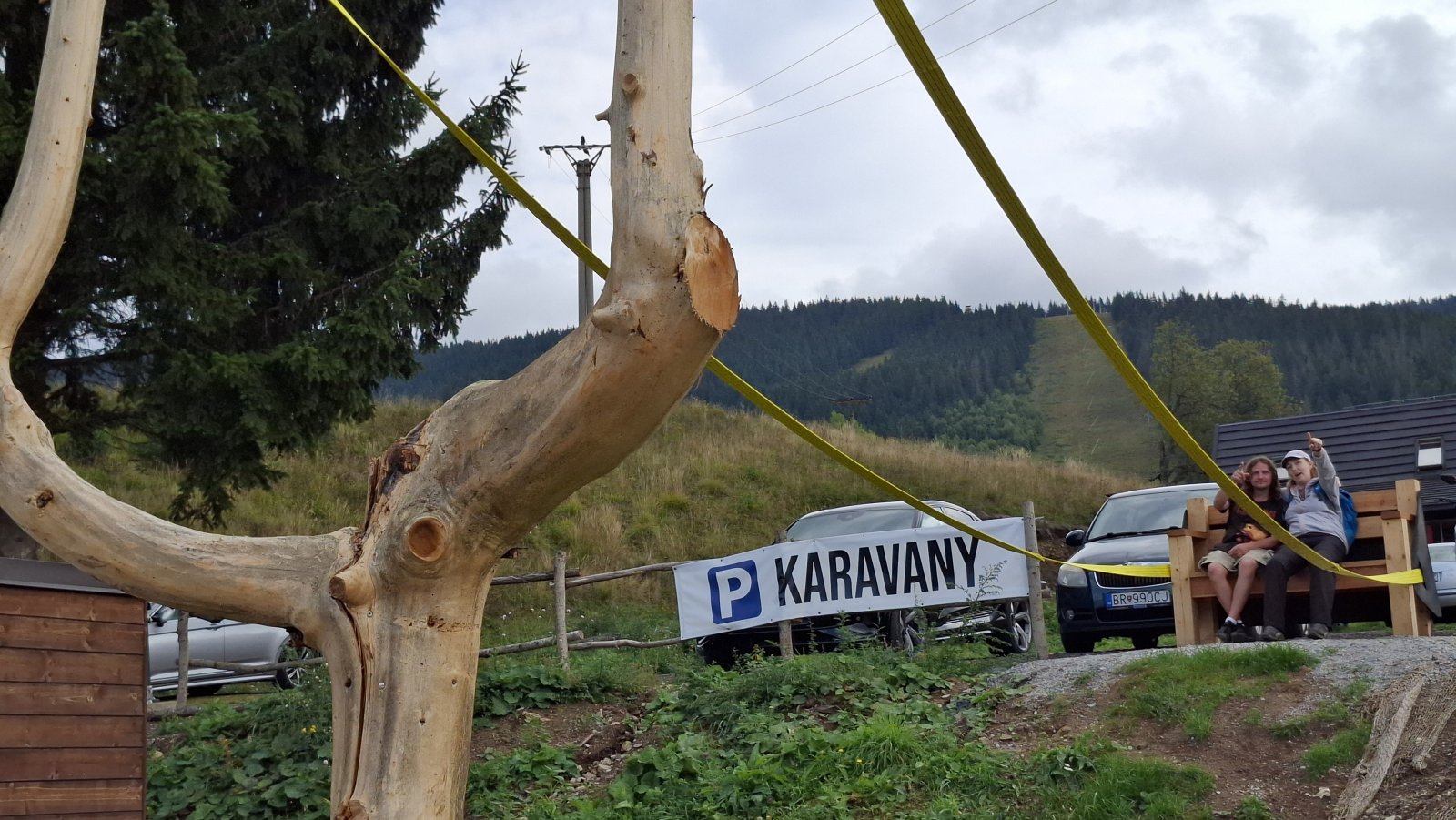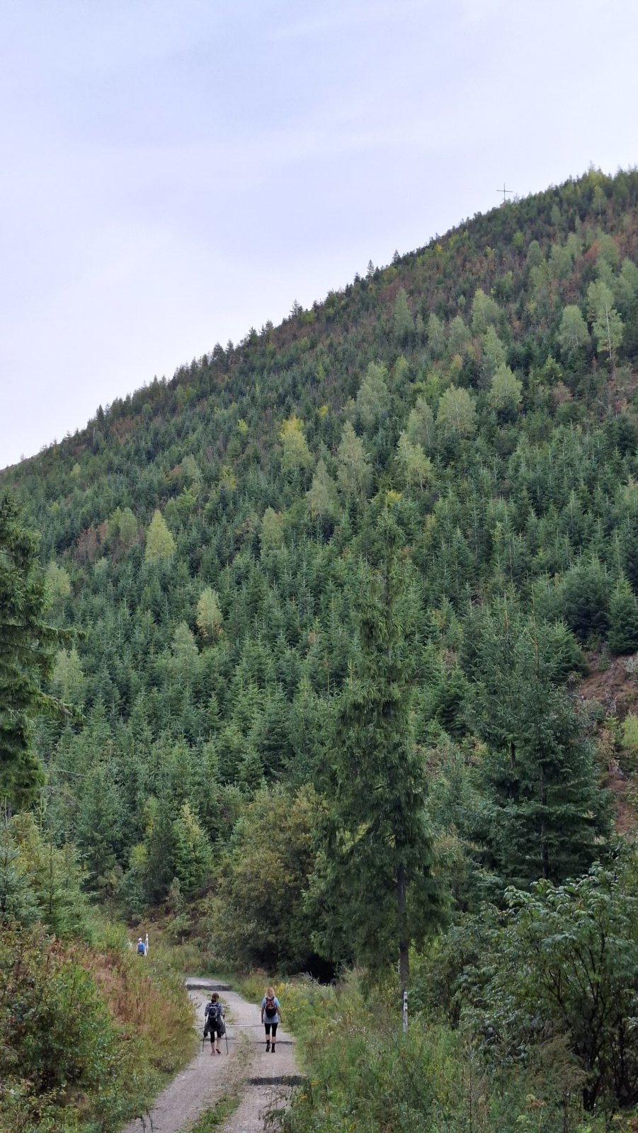 A Telgárt máme za sebou. Tu by mal začať problém, hlavne pre tých, čo šľapú po červenej na Kráľovu hoľu. Tu sa im tá rovinka riadne nakloní. My až taký problém nemáme. Ždiar je síce vrch, ale o stovky metrov nižší a stúpanie naň je relatívne pozvoľné. Napriek tomu máme hore pauzičku rovnako dlhú, ako keby sme vyšľapali na Kráľovu hoľu.