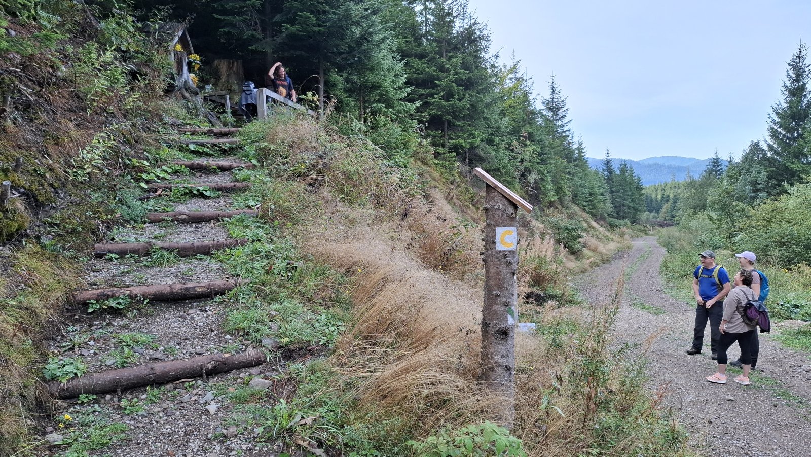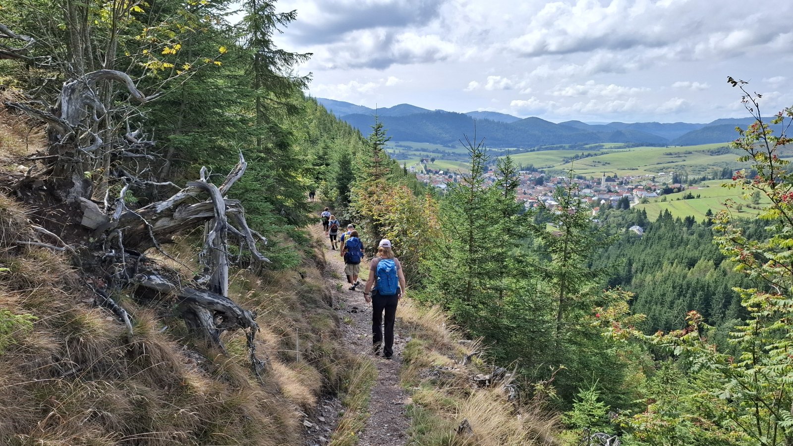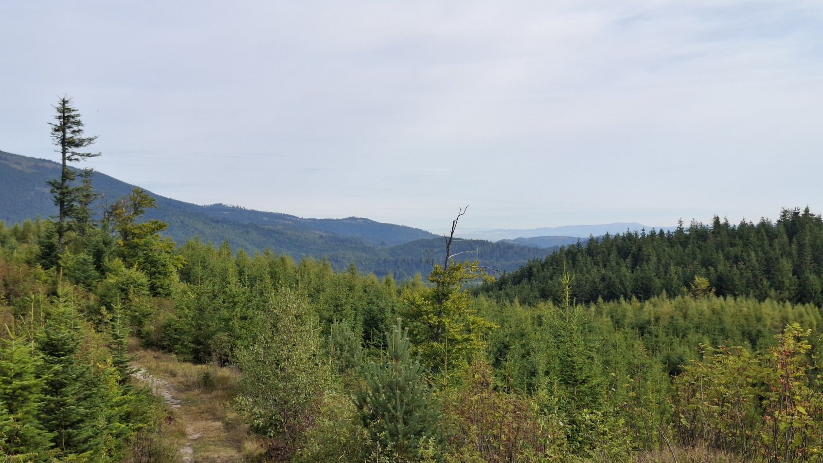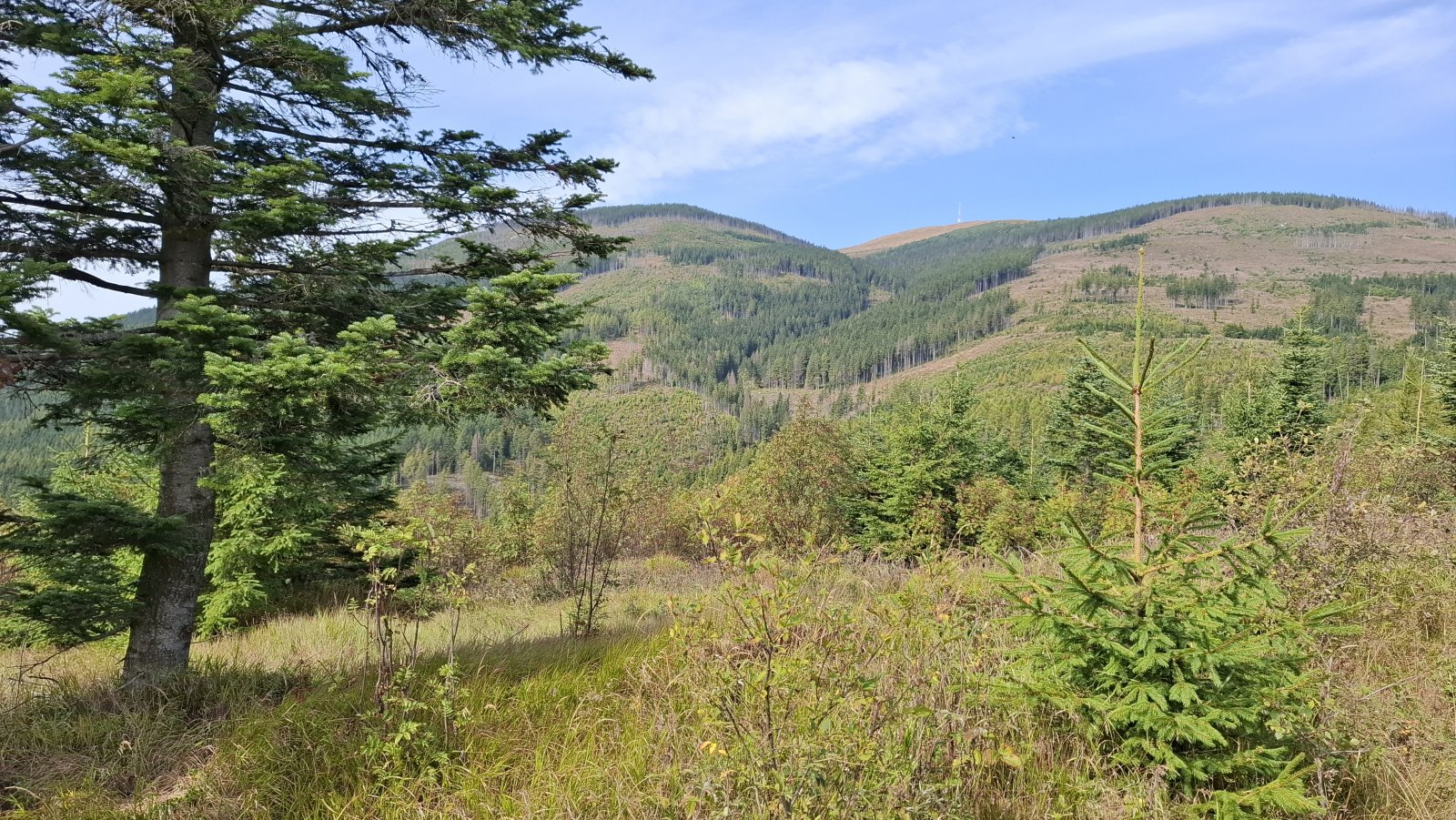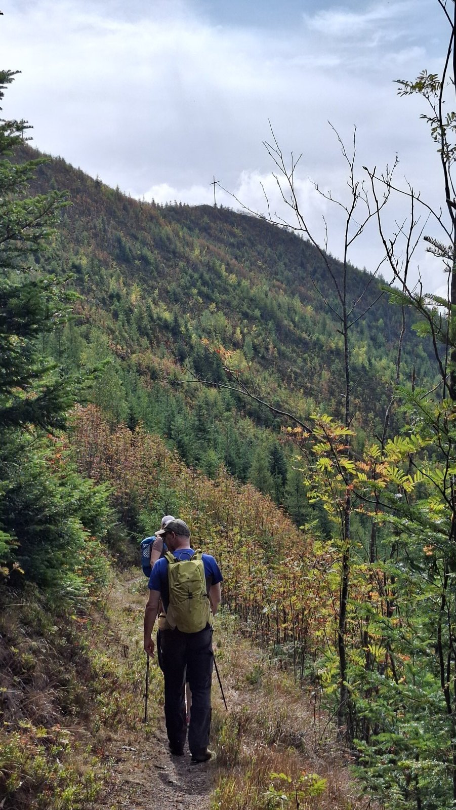 A Telgárt máme za sebou. Tu by mal začať problém, hlavne pre tých, čo šľapú po červenej na Kráľovu hoľu. Tu sa im tá rovinka riadne nakloní. My až taký problém nemáme. Ždiar je síce vrch, ale o stovky metrov nižší a stúpanie naň je relatívne pozvoľné. Napriek tomu máme hore pauzičku rovnako dlhú, ako keby sme vyšľapali na Kráľovu hoľu.