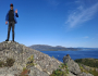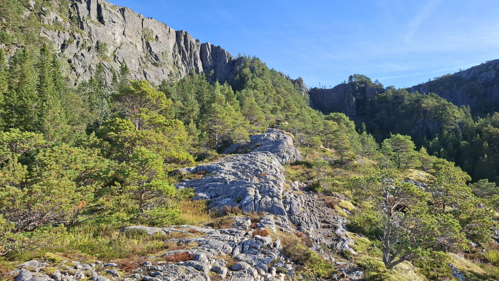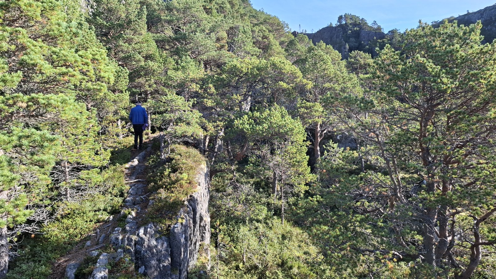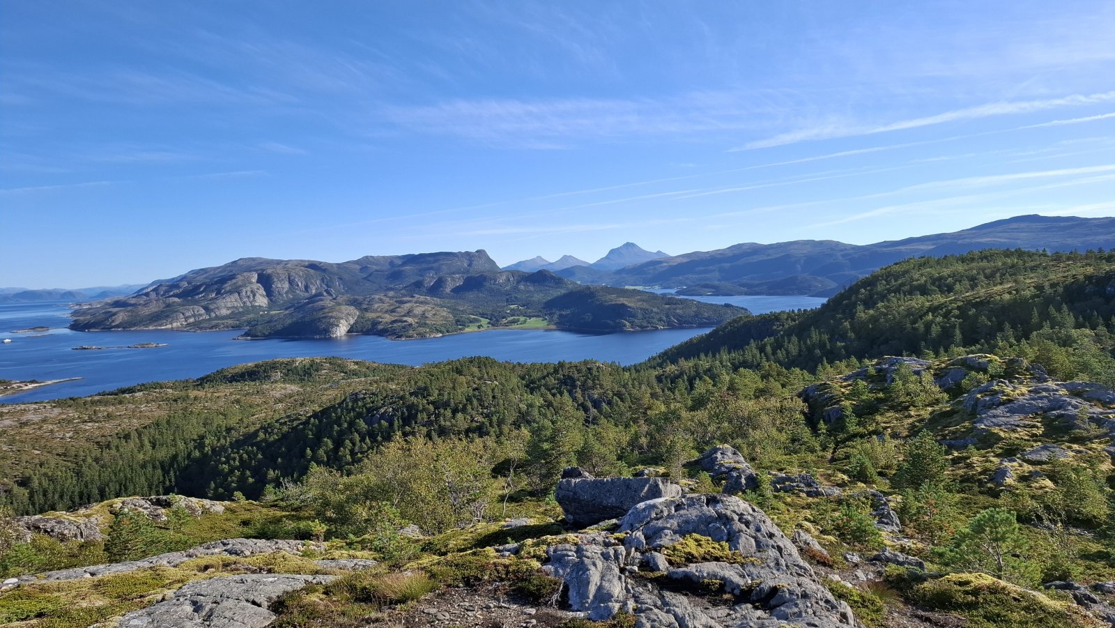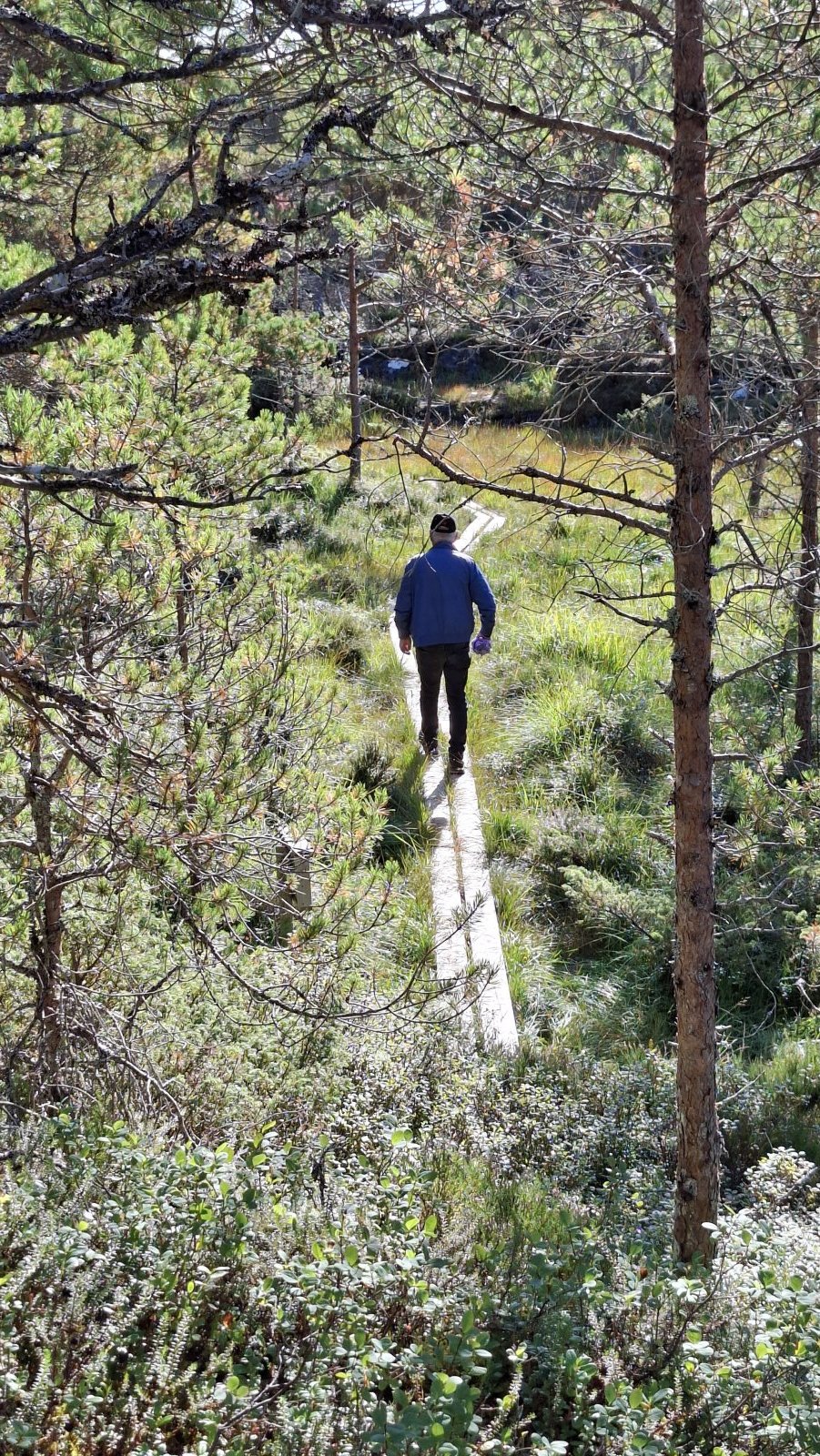 Postupujeme pomaly. Niet sa kam ponáhľať. Určite na chatu prídeme skôr, ako chlapi z mora. Aj tak bolo. A dopredu prezradím, že sme neľutovali. My sme mali zážitky, výhľady a všeličo iné. Oni veľa toho nezachytali. Počasie bolo nádherné, na turistiku je to vždy dobre, na more to tak nemusí byť. Ale to je iná téma. Trasa nie je dlhá. Síce Nóri píšu, že je to stredná obtiažnosť, ale ak je pekné počasie, nie je mokro, alebo primrznuté, tak je to pohoda. Prichádzame na vrchol. Konečne som tú rozhľadňu objavil. Je iná, ako naše rozhľadne. Naše sa väčšinou stavajú do výšky, aby bolo vidieť ponad stromy, či iné prekážky. Táto? Ani jeden schod. Lenže tu býva veterno a aj počasie sa dokáže zmeniť behom chvíľky. Viac chráni pred počasím, ako by zlepšovala výhľady. Je to moja prvá rozhľadňa v Nórsku, tak ani neviem povedať, či je bežnou súčasťou fotodokumentácia s metličkou a lopatkou…