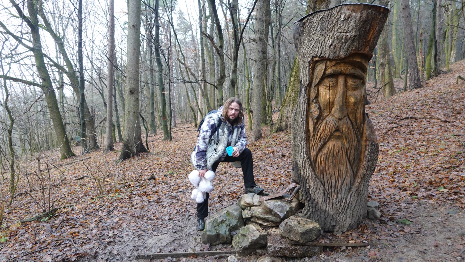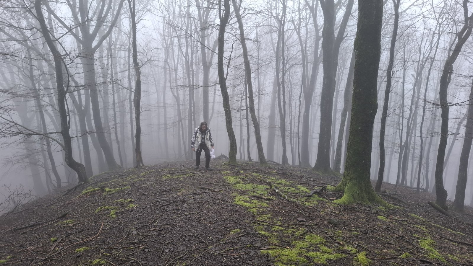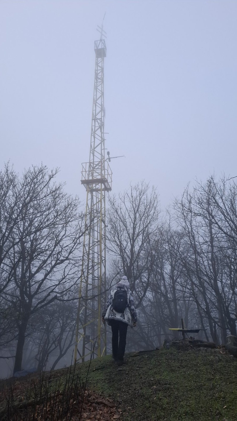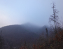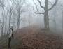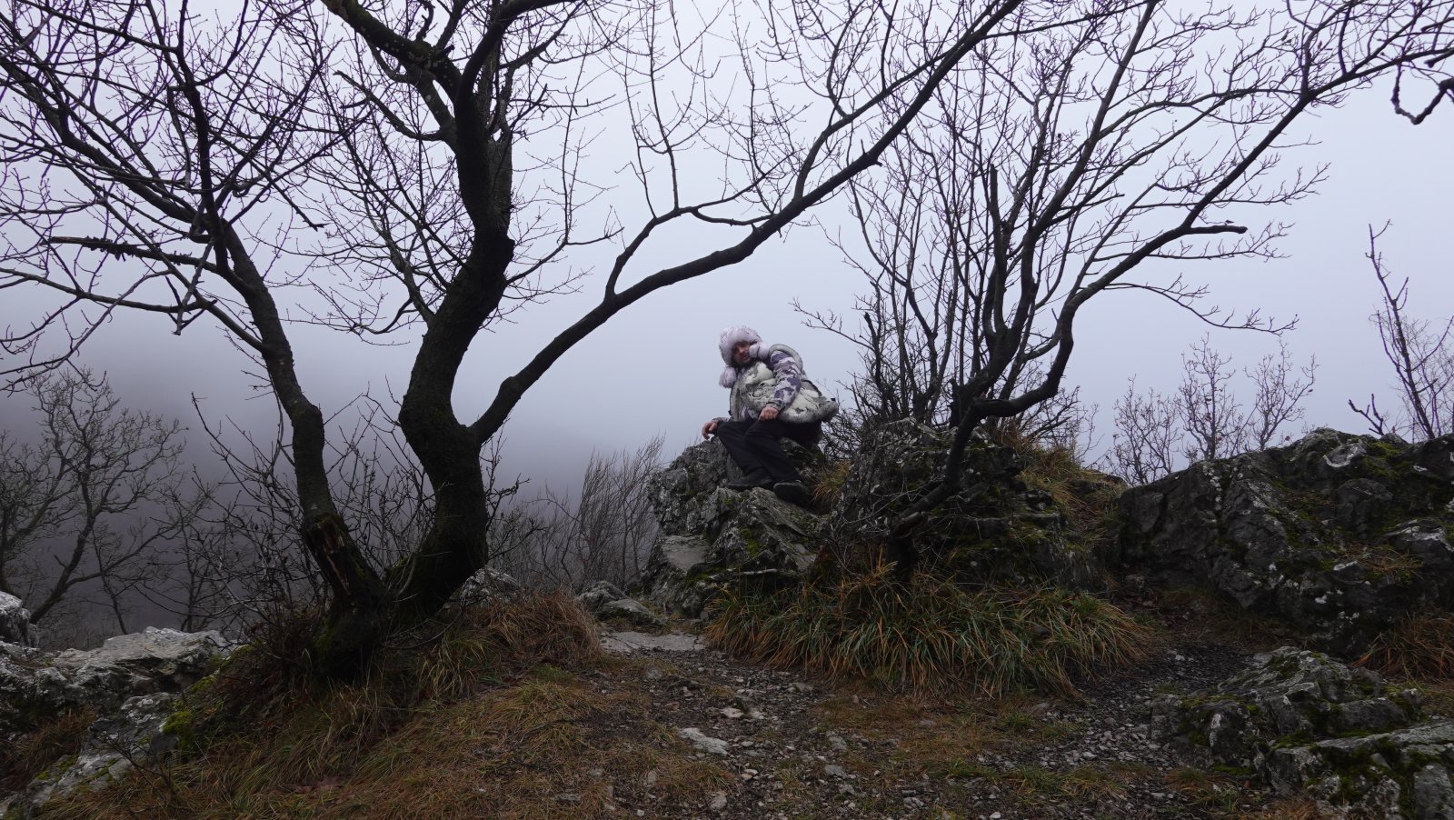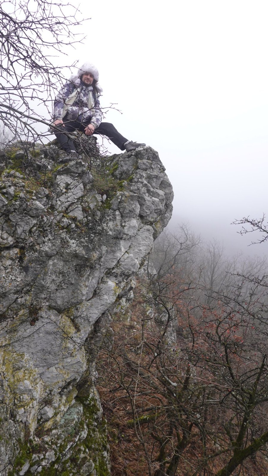 Dostali sme sa hore. Fúka. Ešte že sme sa najedli dolu. Čakal som viac blata, ale dá sa. Hmla je stále s nami. Z „rozhľadne“ vidieť iba Dušana, ako tam dolu v tom vetre mrzne a zase niečo hľadá v ruksaku. Tu veru dlho nevydržíme. Poďme radšej dolu. Tentoraz ideme po novom turistickom chodníčku. Je o niečo menej strmý, ako staršia časť, ale iba o niečo. Je tu mokro, musíme preto dávať pozor na každý svoj krok. Ale to je vlastne štandard, a nielen tu. Nik netreskol. Navštívili sme aj vyhliadku pod Petrklinom. Bol by odtiaľto pekný pohľad na Vápennú, ale dnes nie. Poďme my radšej dolu do dediny na tú pizzu…